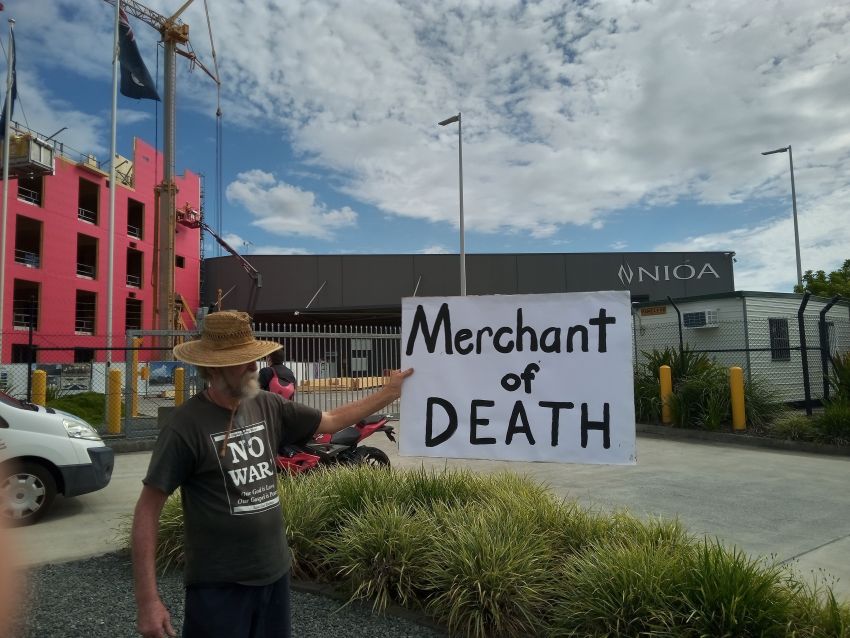 Activists from Quaker and Catholic community groups took action outside weapons manufacturer Nioa’s gates in Pinkenba, Queensland, on February 10.