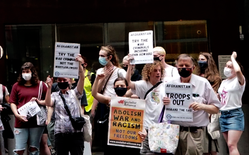 A snap protest on November 23 outside the Australian Department of Defence offices called for the total withdrawal of Australian troops from Afghanistan, full accountability for the war crimes committed (including senior officers and politicians), compensation to the victims of these crimes and an end to the persecution of whistleblowers and journalists who reported the war crimes. It was organised by the Sydney Stop The War Coalition (SSTWC).