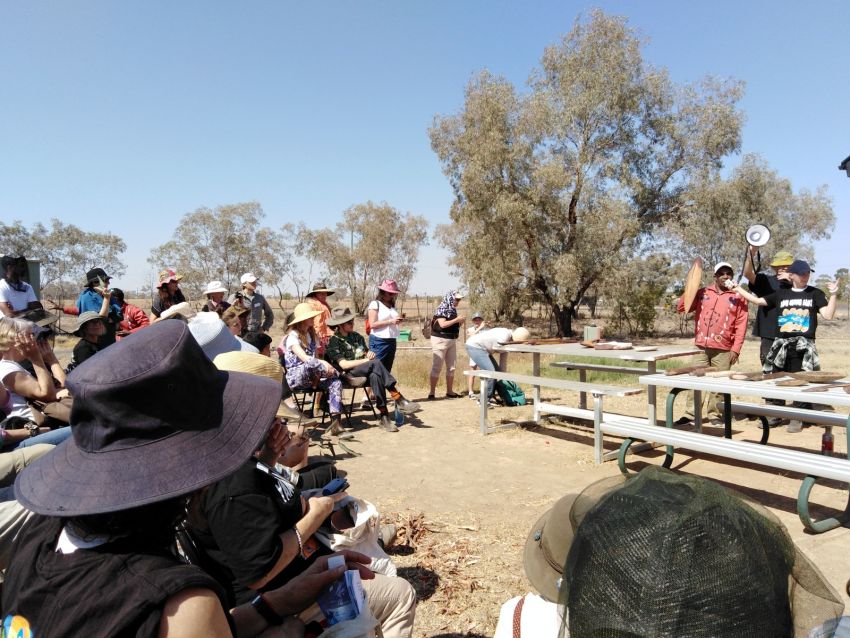 "My name is Rachel Evans, I'm from Water For the Rivers in Sydney. I'm part of the Corroboree festival organising tour, and now you're going to hear from Bruce Shillingsworth, who is leading this campaign."