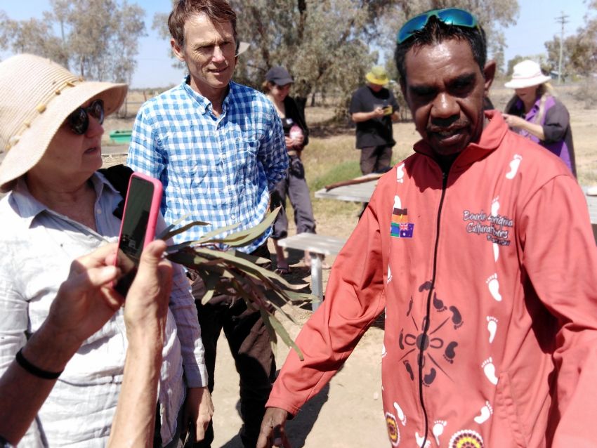 The building next to where we slept in our (broken) tent last night is home to the 2CUZFM radio station studio and Bourke Aboriginal Cultural Tours, which turns out to be a talk rather than a walk, for us at least.
