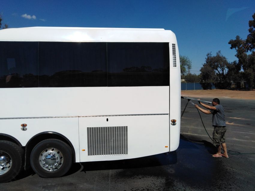 2.25pm Some bus drivers like to keep their engines squeaky clean