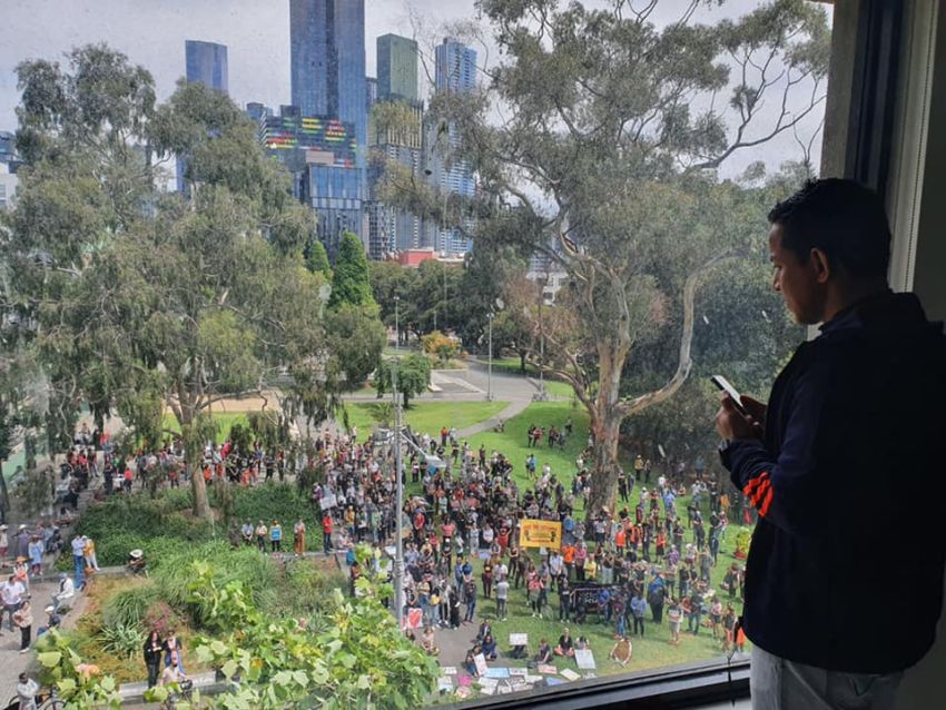 Ah Don Khan Aukmt, a 24-year-old Rohingya refugee, who was detained for seven years in Papua New Guinea and is still in the Park Hotel, asked the crowd not to forget those still imprisoned.