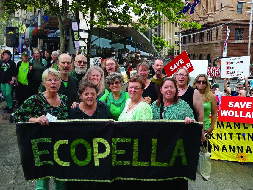 Ecopella are a troupe of progressives who bring musical instruments, protest songs and humour to Sydney protests. The choir celebrates 23 years this year.