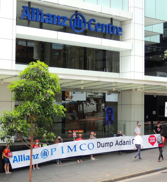 Allianz is one of the biggest insurance companies in the world, with offices in Sydney, Brisbane and Melbourne. Earlier, Allianz had joined an alliance of international companies with a public policy of not supporting fossil fuel projects. However Allianz has recently bought PIMCO, a finance company, which is one of Adani's largest financiers.