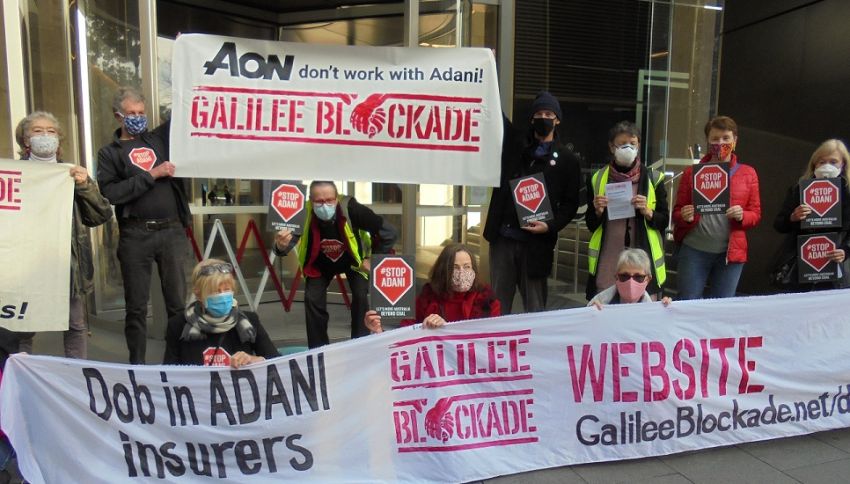 Early on August 14, about 20 people from Galilee Blockade protested outside insurance company AON, calling on it to cease working with Adani.