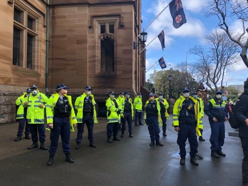 The massive police operation, outnumbering protesters three to one, was an exercise in social control, rather than any concern about people’s health. It would seem that NSW Police Minister David Elliot’s pride was on the line. He was determined to impose his authority and stop this rally — especially as the NSW Supreme Court had given the already massive June rally the go-ahead just minutes before it formally started.