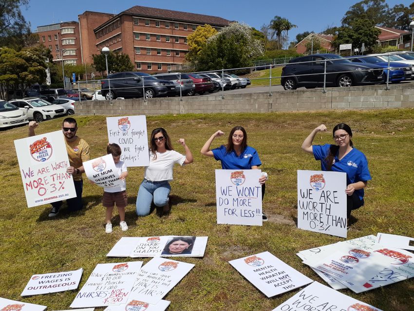 Mental health nurses from the Waratah Mental Health Centre protested the NSW government's effective wage freeze on October 15 outside their hospital.