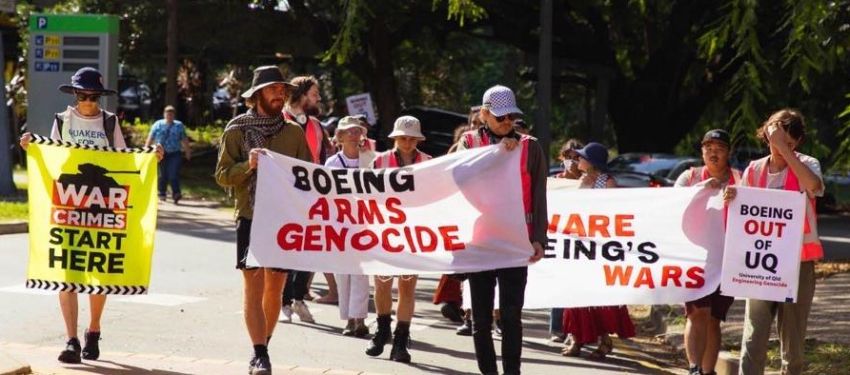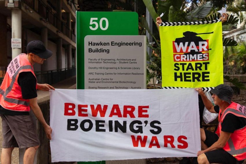 Wage Peace, an anti-war protest group, wants the University of Queensland to cut ties with the weapons company Boeing.
