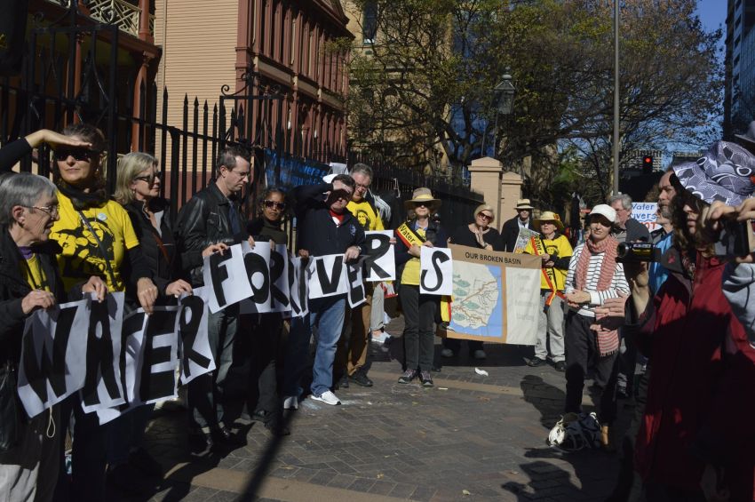 A protest outside New South Wales Parliament on July 10 demanded the state government take real action to combat the dire situation facing the Murray-Darling river system.