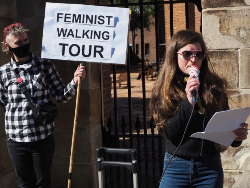 The inaugural COVID-19 safe Green Left Feminist Walking Tour took place on a sunny wintery day on August 23. It was a big hit, stopping at seven sites of feminist struggle in Sydney’s CBD to hear younger and older activists elaborate on little-known feminist and class-struggle history.