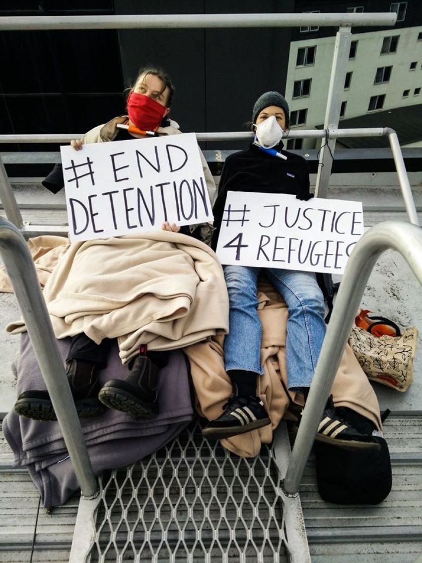 The refugee supporters, who checked into the hotel the previous day, barricaded themselves into their hotel rooms as an act of solidarity with people who were transferred to Australia from Manus Island and Nauru under the Medevac legislation, but who are now being detained by Serco on the 3rd floor.