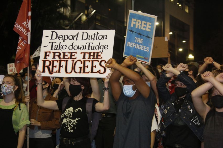 Refugee Action Collective held an action outside Home Affairs minister Peter Dutton’s electorate office on November 5.