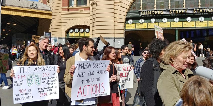Environmental activists rallied in Melbourne and Sydney on August 25 in response to fires destroying the Amazon rainforest.