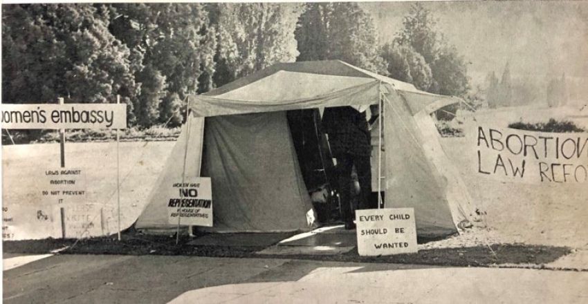 The embassy was a stunt to gain coverage for the Abortion Law Reform Association, which was campaigning for reproductive rights for women.