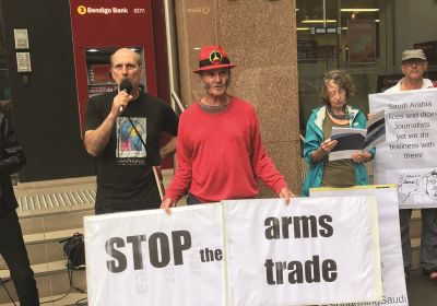 Protesters gathered outside the Sydney office of the Australian arms manufacturer EOS (Electro Optic Systems) on February 21 to oppose the sale of high-tech military equipment to Saudi Arabia, which is waging a genocidal war against the people of Yemen.