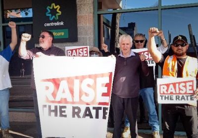 Newcastle unionists and anti-poverty activists protested federal cuts to JobSeeker at a snap action outside Centrelink, reports Steve O'Brien.