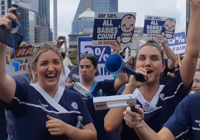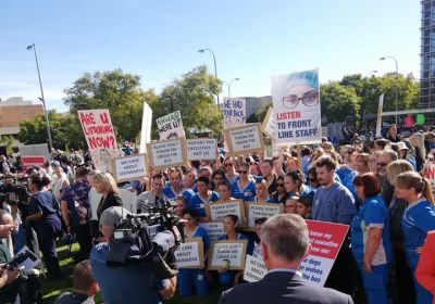 Three thousand nurses and midwives rallied outside the Western Australian parliament as part of a state-wide strike for better wages and conditions. Chris Jenkins reports.