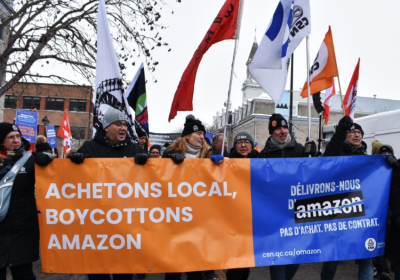 About 2000 people demonstrated in Montreal on February 15 against the closure of Amazon’s seven warehouses and distribution centres in Quebec, reports Marc Bonhomme.