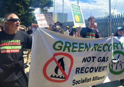 Hundreds of residents protested Viva Energy’s proposal for a floating gas import terminal in Corio Bay. Sue Bull reports.