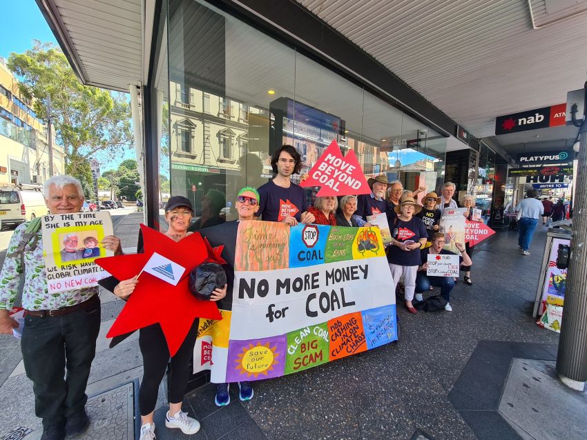 Climate activists from Move Beyond Coal (MBC) gathered outside the Newtown branch of the National Australia Bank (NAB) on March 30 and then occupied the office for half an hour, as part of campaign “FLOOD NAB: 10 Days of Action”.