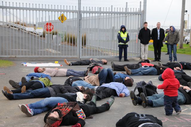 Why were we arrested? Because we blockaded the security gate, stopping all traffic from entering and exiting Swan Island. Swan Island trains Australian intelligence and special operations agents. It also houses a communications centre for overseas special operations. The base is central to Australia's role in the Afghanistan war.