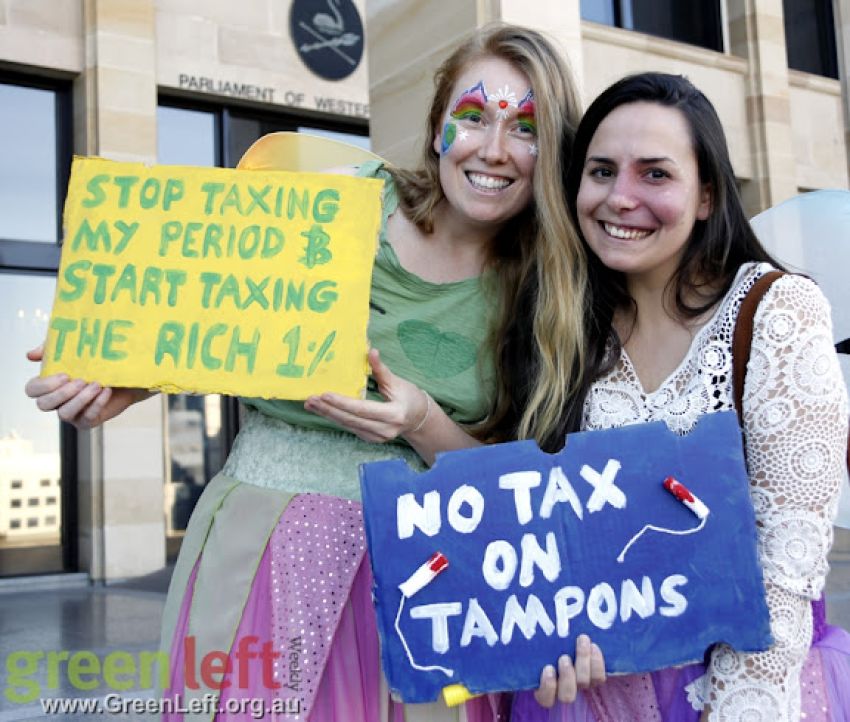 Almost 50 people marched from Parliament House to Dumas House (where the state treasury offices are located) to present petitions to treasurer Mike Nahan on August 14. The petitions called for the removal of the Goods and Services Tax (GST) on tampons and other women's sanitary products.