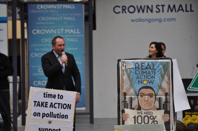 The leader of the National Party, Senator Barnaby Joyce, held and anti-carbon tax rally at Wollongong’s Crown St Mall on July 13. The self-professed climate change denier drew quite a crowd, but not the kind he was hoping for.