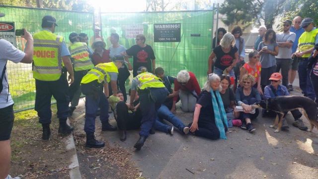 On October 7, police forcibly removed protesters who were sitting in front of trucks ready to knock down an initial group of trees in the park. About 100 chanting demonstrators gathered at the fenced-off site on Euston Road, St Peters, but were unable to prevent the truck's entry.