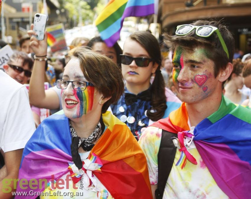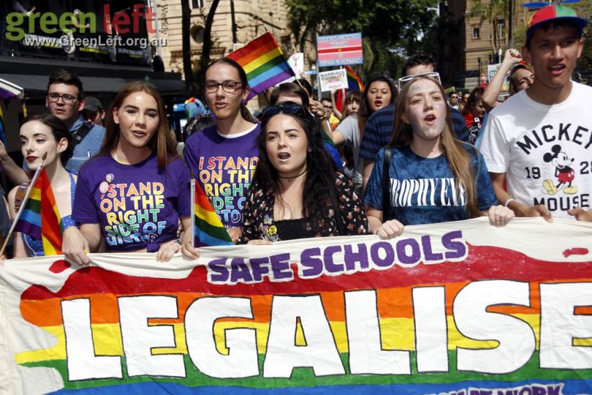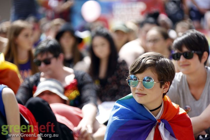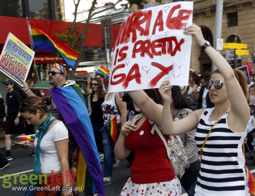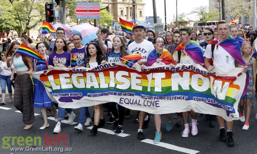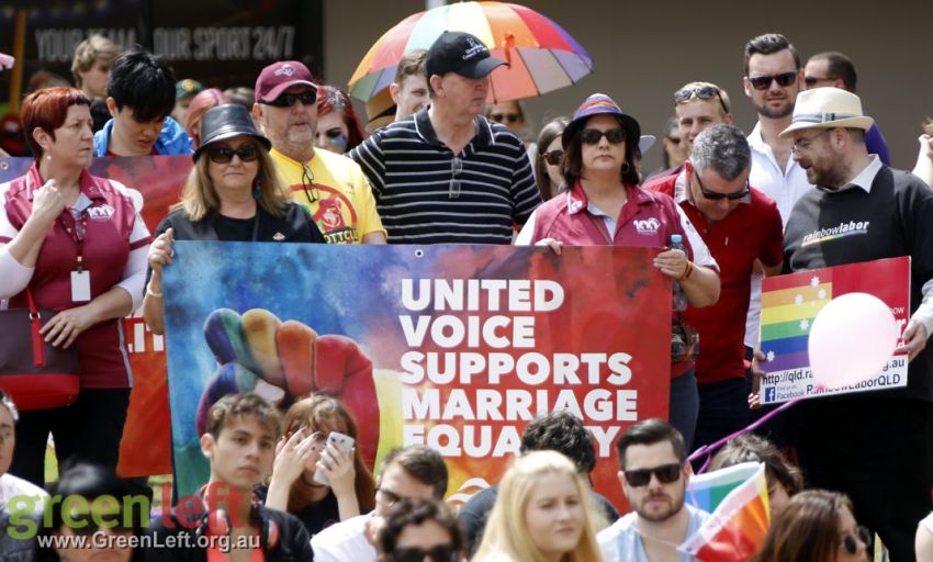 "The Pleb is dead, now let us wed" read one placard at Brisbane's October 15 rally for marriage equality.