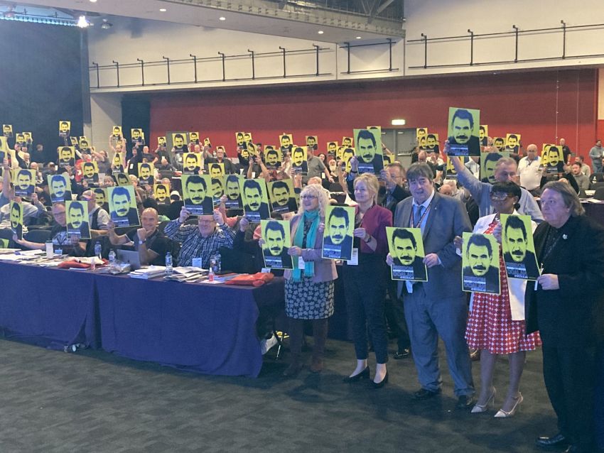 Delegates to the policy conference of Unite union in Britain called on Turkey to release Kurdish leader Abdullah Ocalan, imprisoned for more than 22 years.