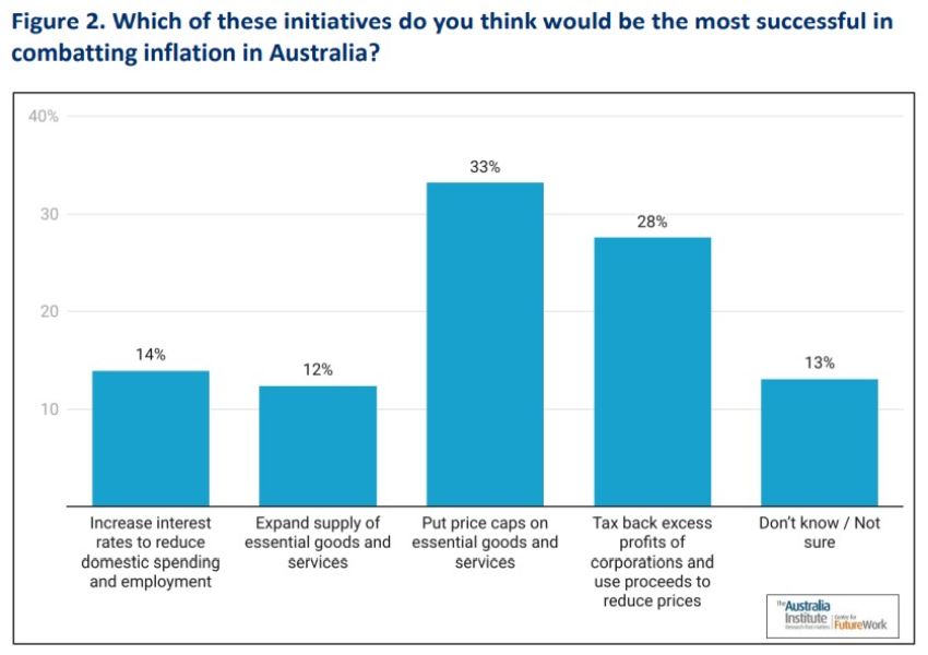 A new report by progressive think tank The Australia Institute’s (TAI) Centre for Future Work (CFW) found 66% of respondents believes inflation could be curbed by limiting companies’ ability to profit by raising prices.