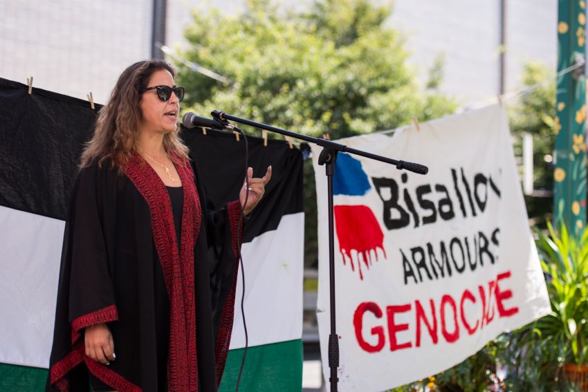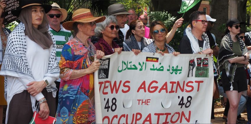 Other speakers included Emmy-nominated journalist Ahmed Shihab Eldin, Palestinian school student Noura Hussein and Associate Professor Jumana Bayeh from Macquarie University. The rally was co-chaired by Jana Fayyad and Damian Ridgeway from the Palestine Action Group.