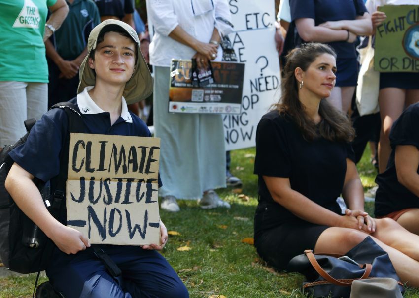 "Don't give up," he implored the young strikers. "The war ended," he said. People power can make the difference and climate activism today is about doing "something much bigger" than the anti-Vietnam war movement of the past.