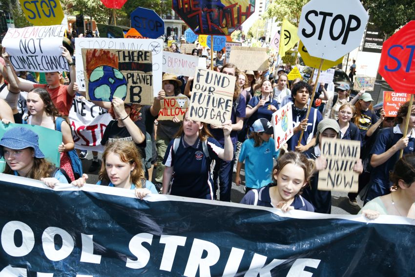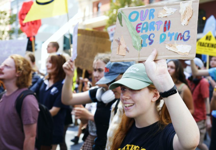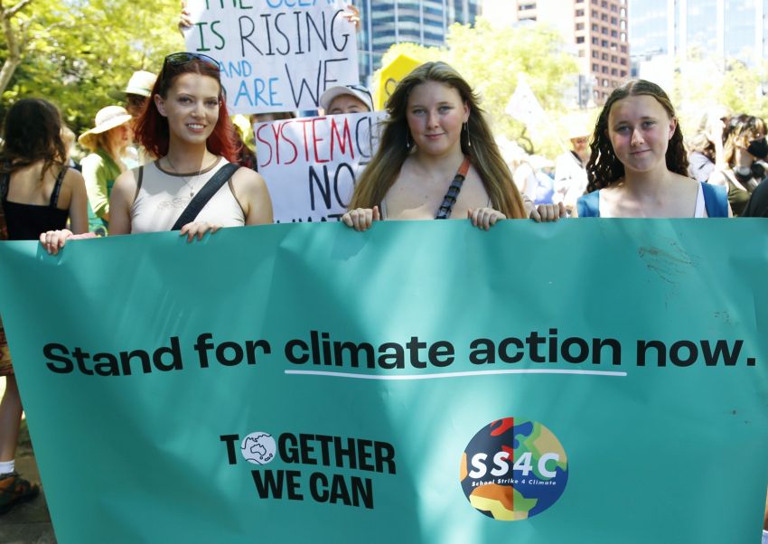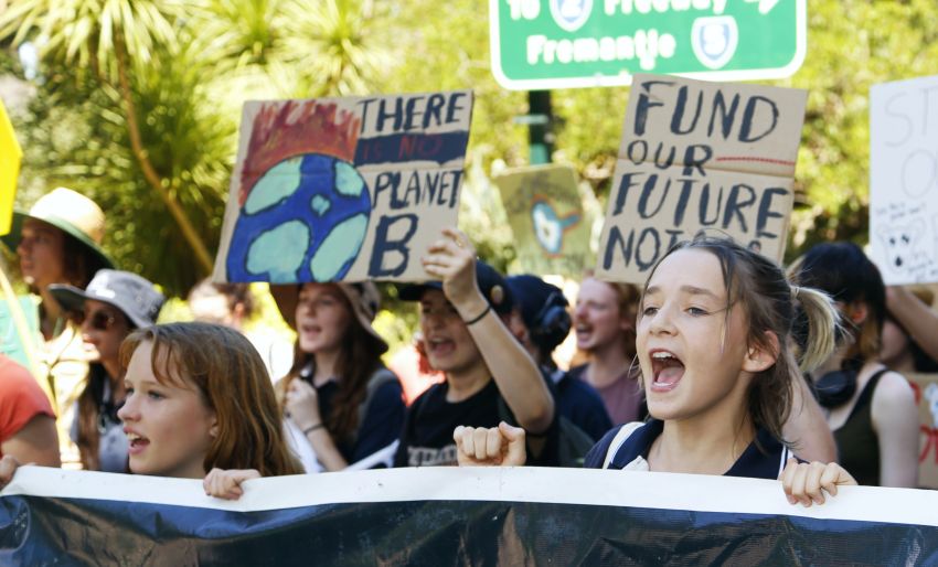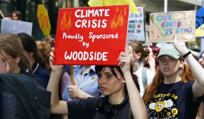 Hundreds of climate strikers heard from First Nations leaders and climate activists before marching to the Woodside office in Perth on March 3.
