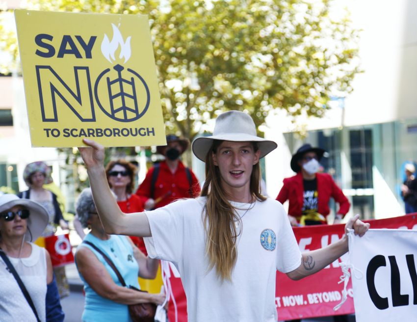 Speakers included Traditional Owners Raelene Cooper and Josie Alec, who are campaigning against Woodside's Scarborough Gas Hub and Joana Partyka, who was raided by WA Police because of her climate activism.