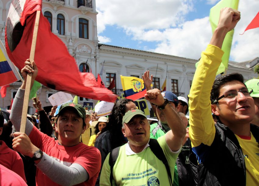 Quito's Plaza Grande was packed in a show of support for the pro-poor Citizen's Revolution initiated by Correa — first elected in 2006 and re-elected with 57% of the vote in 2013 — and to reject the sometimes violent right-wing protests.
