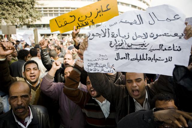 On February 16, 10,000 textile workers went on strike. The February 17 EurasiaReview.com said: “Work stoppages have also closed banks and stalled buses in Cairo. Police officers, airport employees, ambulance drivers and electrical engineers have carried out protests.”