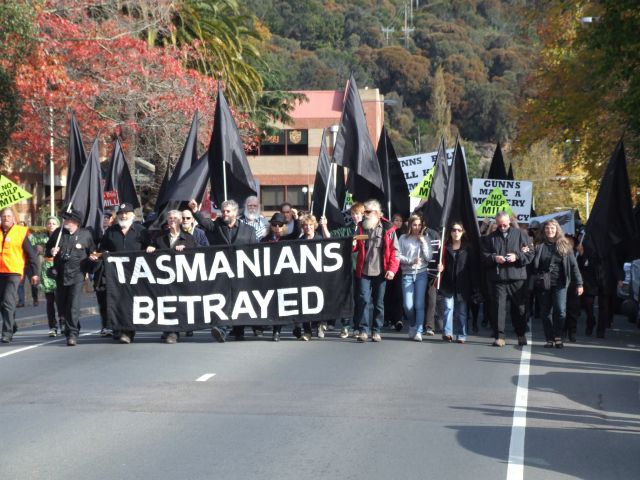 “The Tasmanian community will not be ignored by its elected representatives. The Tamar Valley pulp mill will never be built, and Tasmanians will fight for the return of their democratic rights. We will never give up our peaceful campaign to stop this pulp mill.”