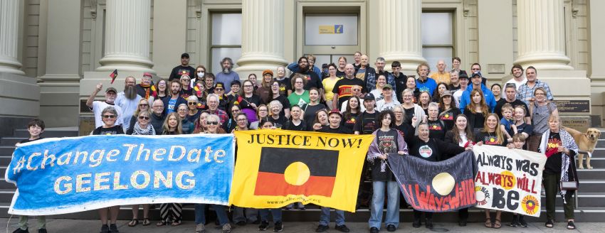 Protesters made their opposition known as the new City of Greater Geelong Council (CoGG) pushed to undo the former council decision, made with First Nations peoples’ support, not to recognise January 26 as “Australia Day”.