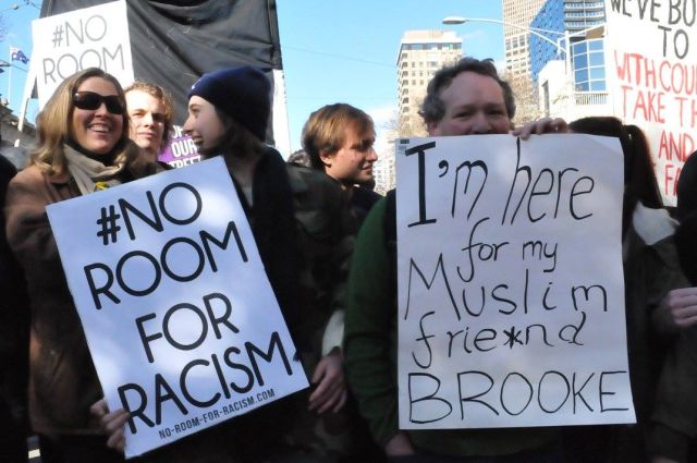Say No to Racism protesters included Greens, Socialist Alliance, anarchists, local musicians and people who had "never been to a rally before".