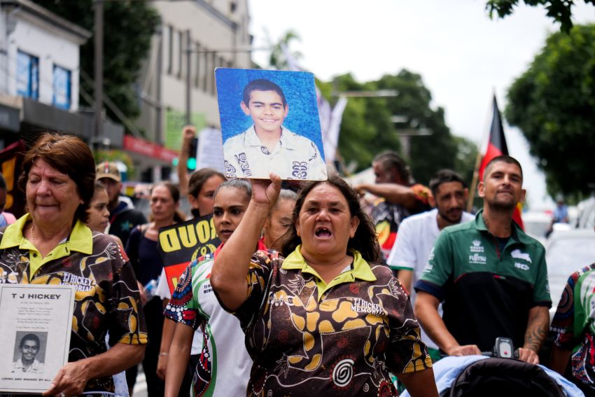 TJ Hickey’s mother Gail Hickey led a march through Redfern to NSW parliament on the 15th anniversary of TJ’s death on February 14.