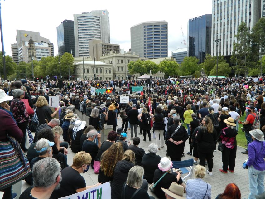 More than 5000 people rallied in Tarndanyanga (Victoria Square) in Adelaide, followed by a march along King William Street, reports Renfrey Clarke.