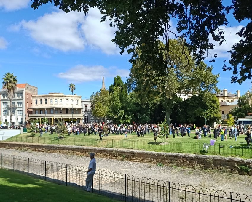 Two thousand people joined the protest in Hobart, spilling out of the park onto surrounding streets, reports Rose Matthews.