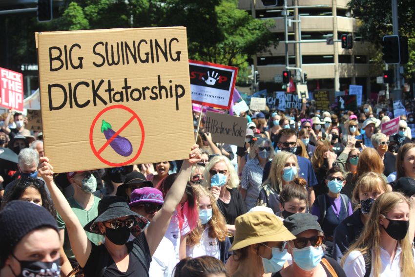 Women, allies and supporters have had enough. A prominent chant called for Christian Porter to resign. Another was: "The women, united, will never be defeated".