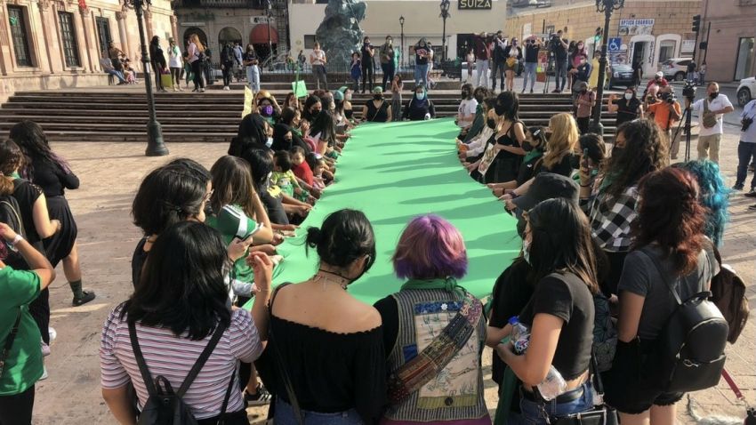 Immediately after the decision was announced, dozens of feminists and women’s rights activists reached the Nueva Tlaxcala public square, behind the Government Palace, in Coahuila’s capital Saltillo, to celebrate the achievement of reproductive rights. The protesters placed green scarves, a symbol of abortion rights, on the statue of Nueva Tlaxcala. They shouted slogans such as “abortion is no longer a crime,” “first Coahuila, then all of Mexico”, among others.