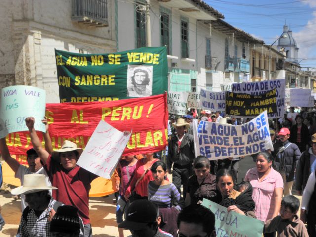 Addressing the gathering, Wilfredo Saavedra, a community leader from Cajamarca, condemned the contamination of highland lakes that would accompany the Conga project.