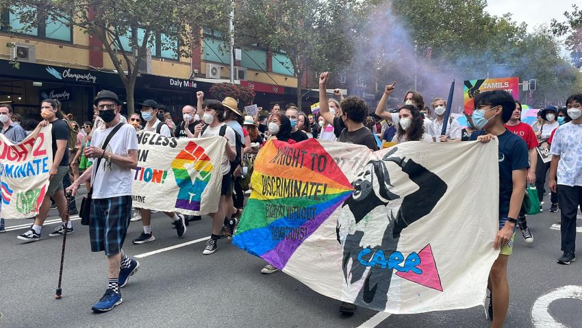 Several hundred protesters marched down Oxford Street in Sydney on March 5 to celebrate the LGBTI community as well as protest the Religious Discrimination Bill and the corporatisation of Mardi Gras.
