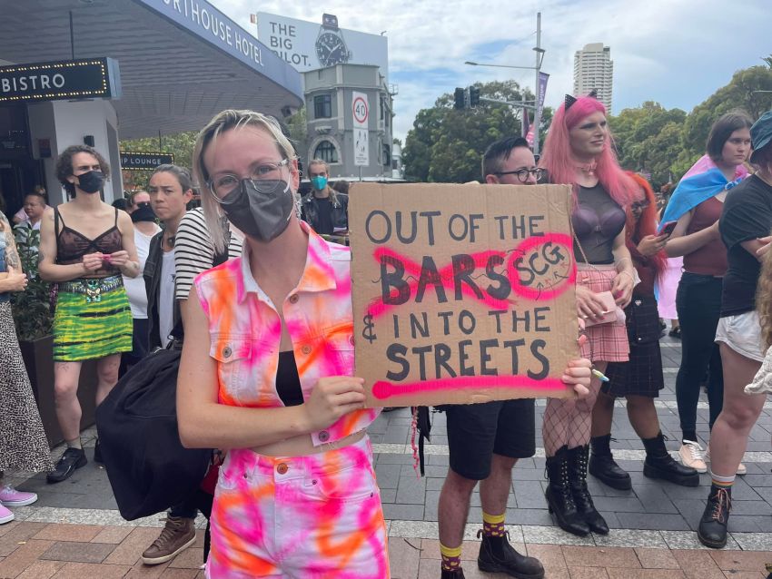 The rally began at Taylor Square and ended with a dance party at Hyde Park. Organised by Pride in Protest (PIP) and Community Action for Rainbow Rights, the protest was attended by various community organisations, activists and the 78ers, organisers of the original 1978 Mardi Gras protest.