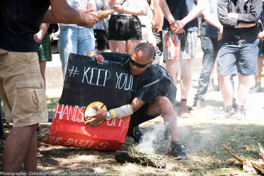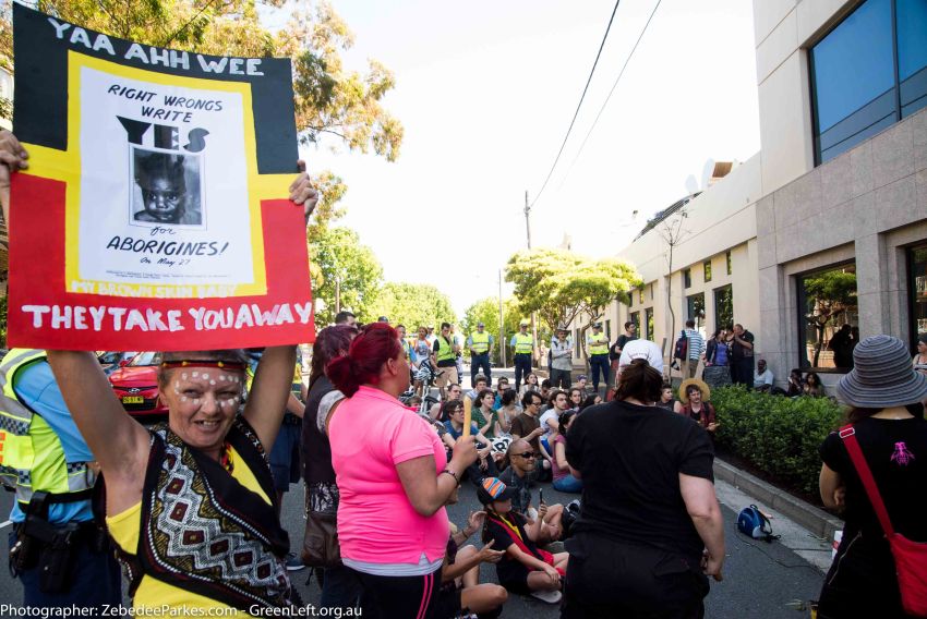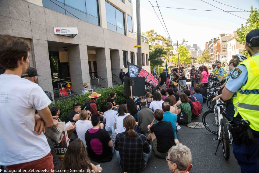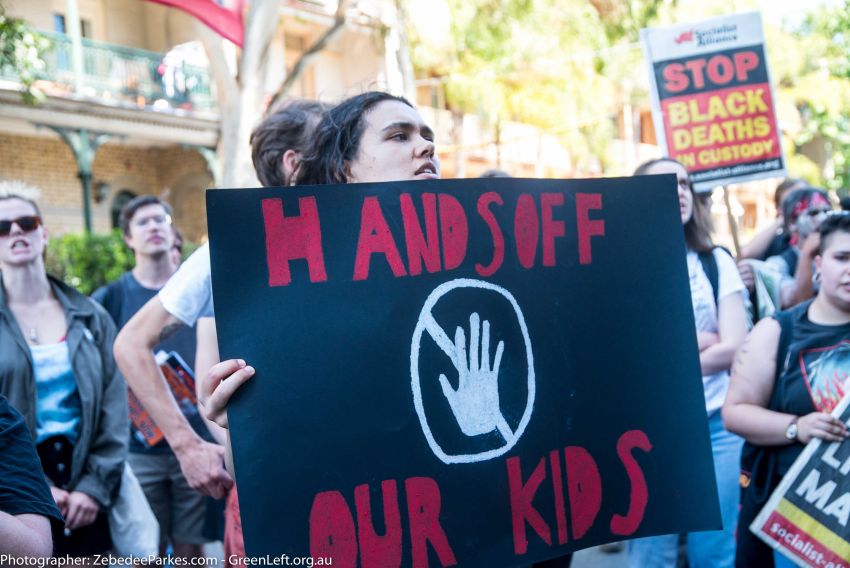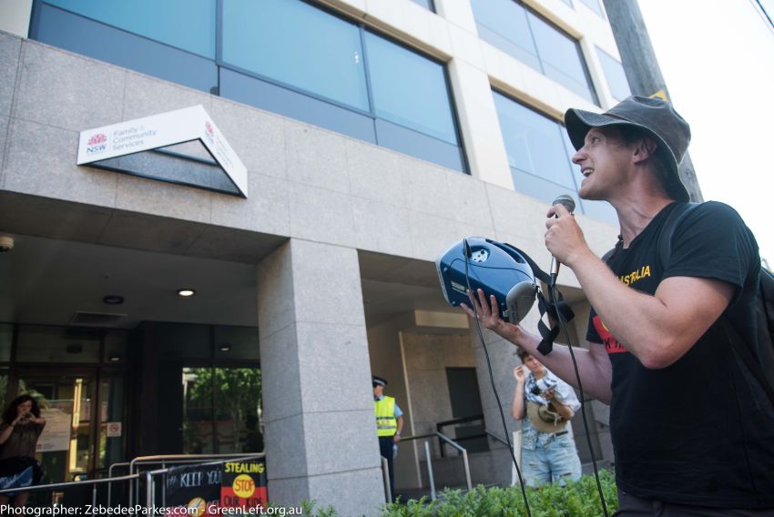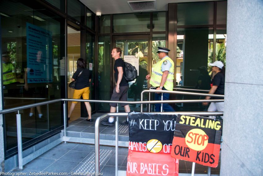 Aboriginal rights activists marched to Redfern's Department of Family and Community Services (FACS) on Monday 7 November to protest the forced removal of Aboriginal children from Aboriginal families by the child protection services.