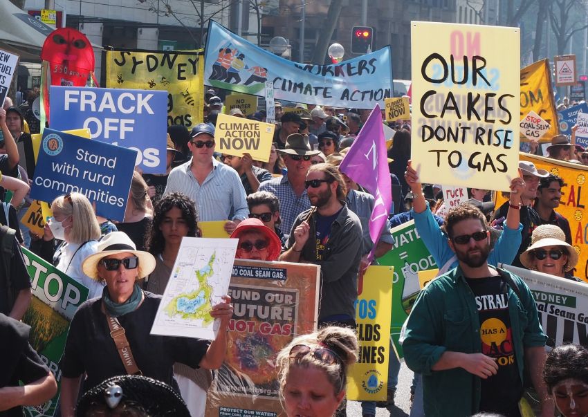 Climate activists joined Gomeroi First Nations, farmers, unions, Knitting Nannas and the Country Women’s Association (CWA) among others on September 14 against Santos’ expanded plans to mine coal seam gas (CSG) in the Pilliga State Forest.